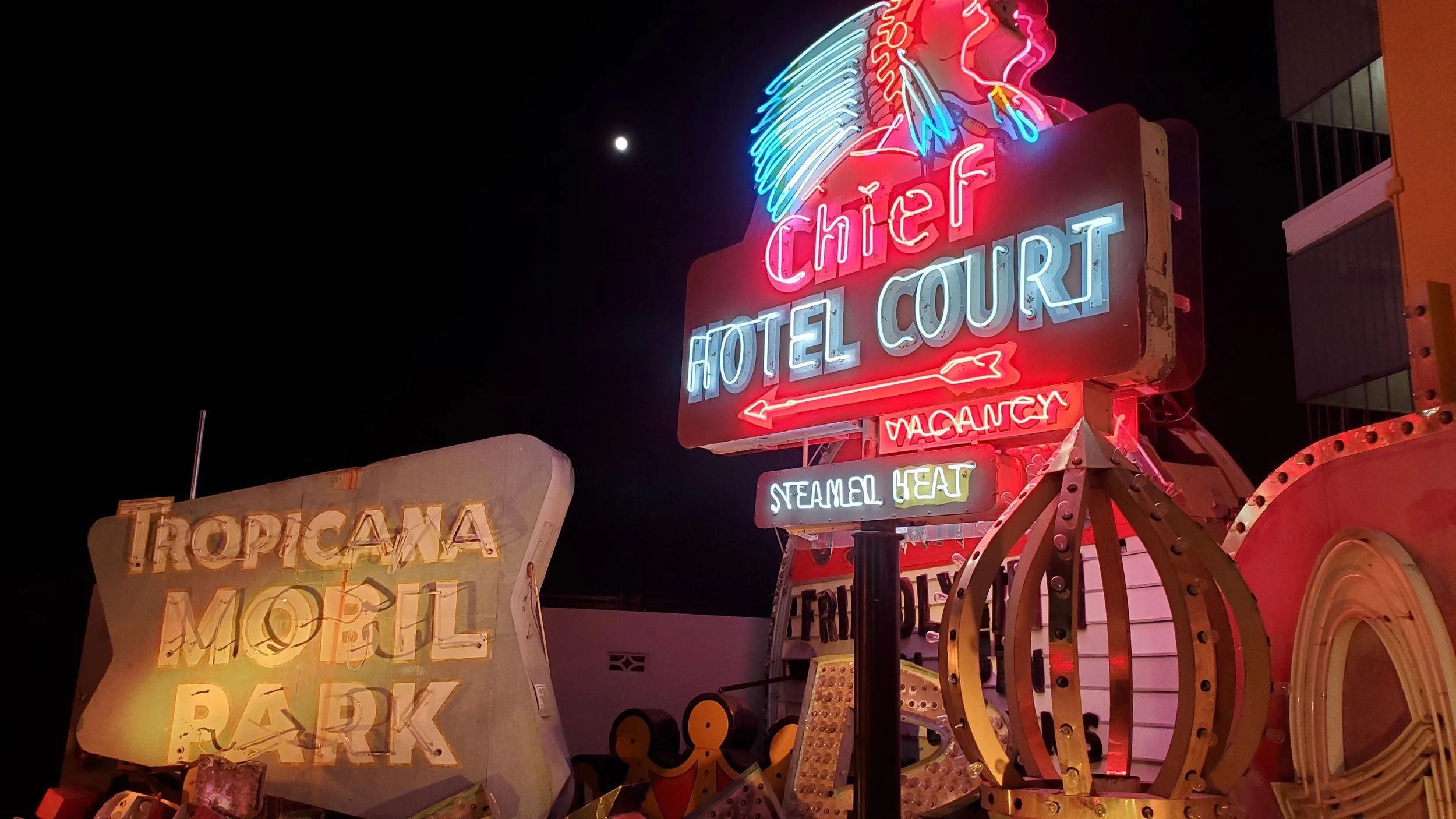 Among the many signs and lights in the museum lies the statue of Siegfried and Roy. When the Mirage was torn down along with the Secret Garden, that left the statue of the legendary duo standing alone on the Strip. To preserve it from seeing the wrecking ball or local dump (or going in someone’s private museum), the Neon Museum decided to preserve and display it in their outdoor exhibit. Though it has no neon lights adorning or shining on it, it stands now preserved among the rest of the historical landmarks as Siegfried and Roy take their spot in history for the world to see and remember how they changed the face of Las Vegas forever. The official unveiling of the statue is expected to take place on April 25, 2026.